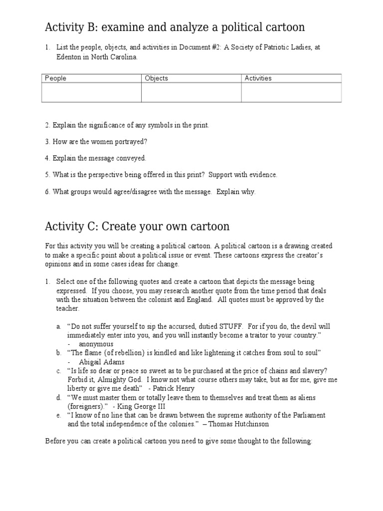 Activity B Examine And Analyze A Political Cartoon People Objects Activities Cartoon