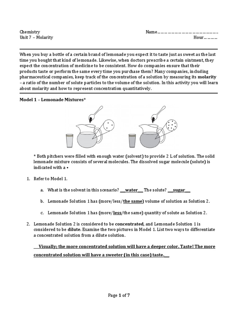 32 Molarity Pogil Worksheet Answers Worksheet Project List