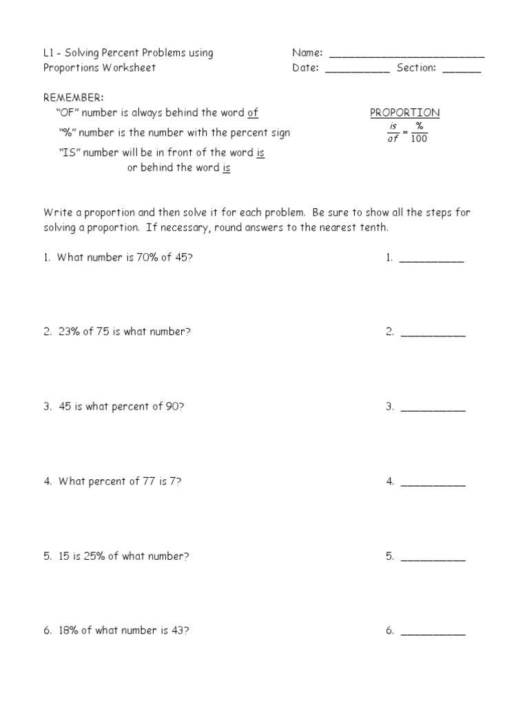 Solving Percent Proportion Problems Business Business